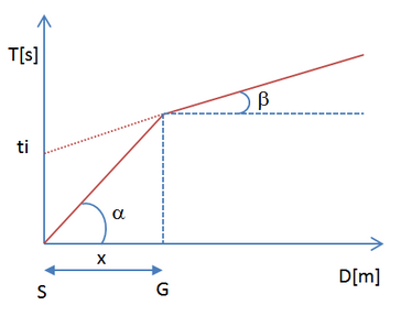 Graficamente il tempo di ritardo è dato dall'intersezione della retta che comprende un segmento della curva tempi-distanze con l'asse dei tempi.