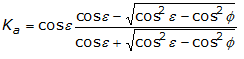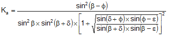 In effetti Rankine adottò essenzialmente le stesse ipotesi fatte da Coulomb, ad eccezione del fatto che trascurò l’attrito terra-muro e la presenza di coesione. Nella sua formulazione generale l’espressione di Ka di Rankine si presenta come segue: