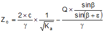 Non essendo possibile stabilire a priori quale sia il decremento indotto nella spinta per effetto della coesione, è stata calcolata un’altezza critica Zc come segue: