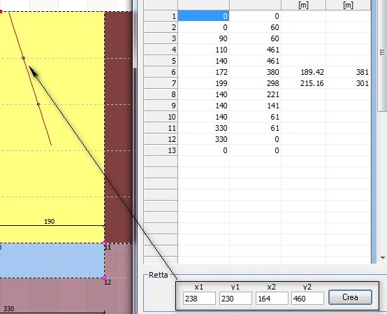 Con il comando crea saranno create e visualizzate in 4° e 5° colonna le coordinate da assegnare al profilo.