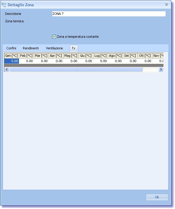 E' predisposta un'apposita tabella nella quale è possibile inserire, per ogni mese dell'anno, il valore della temperatura media mensile all'interno della zona, espresso in [°C].
