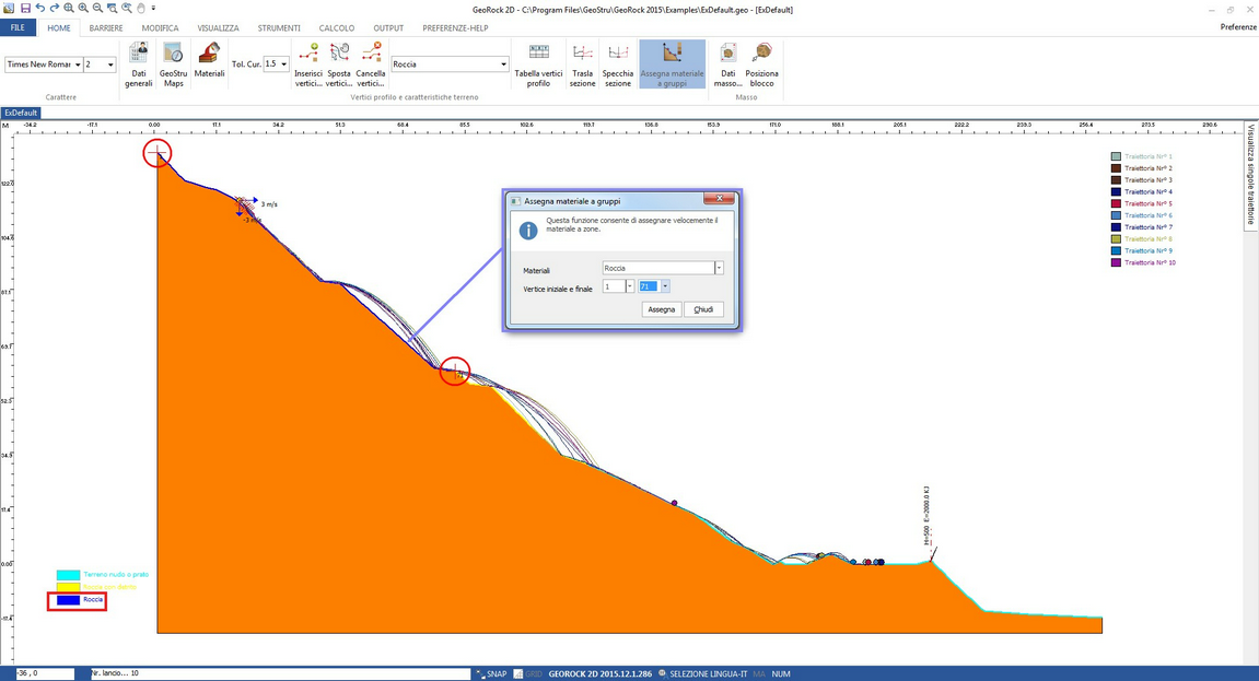 Il programma dispone di un database di materiali con cui caratterizzare ogni tratto del versante.