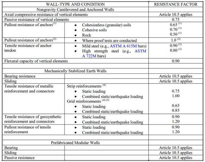 Tab. 11.5.6-1 LRFD - Fattori di resistenza per opere di contenimento
