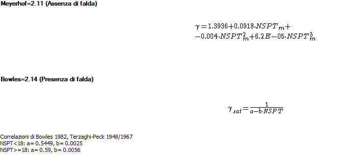 Per ogni autore è riportato un valore del parametro corrispondente relativamente ad un terreno di caratteristiche medie.