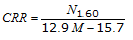 Finn (1985) propone una correlación entre la resistencia a la licuefacción y la magnitud y sugiere una expresión de CRR en función de la magnitud M y del número de golpes corregido N1,60: