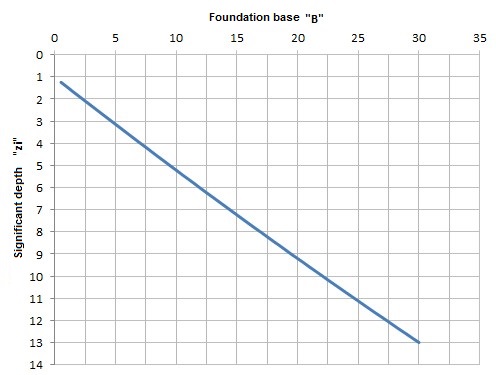 Thus Schmertmann proposes a triangular deformation diagram where the depth at which significant deformation occurs is 4B for strip foundations and 2B for square or circular foundations.