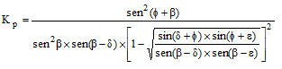 L'espressione di Kp secondo la formulazione di Rankine assume la seguente forma: