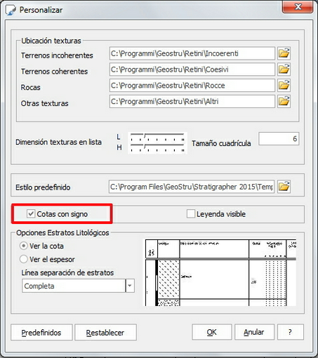 Cabe señalar que las cotas de las estratificaciones deben ser inferiores a la cota inicial de la escala métrica: serán negativas si la escala parte de la cota 0,00 ó de una cota negativa.
