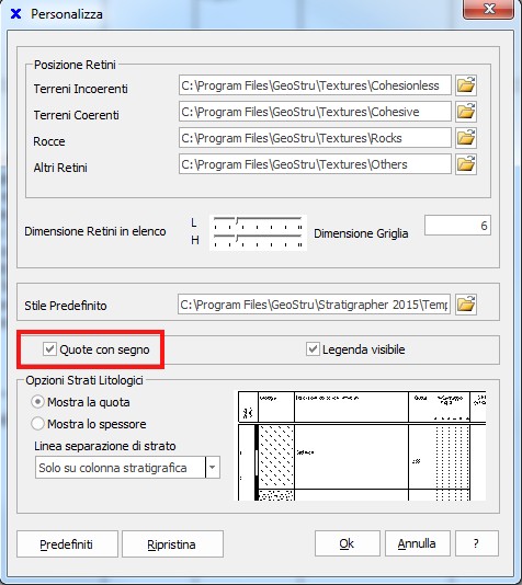 Si ricorda che le quote delle stratificazioni devono essere inferiori alla quota di partenza della scala metrica: saranno negative se la scala parte dalla quota 0,00 o, comunque, da una quota negativa.