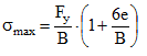 Se u > B/3 ed e < B/6, la risultante delle azioni verticali Fy è interna al nocciolo centrale d’inerzia, la sezione è interamente compressa, la tensione massima di compressione vale:
