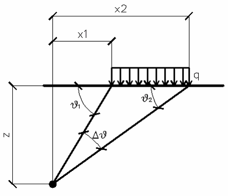 Un carico ripartito in modo parziale con ascissa iniziale x1 ed ascissa finale x2 genera un diagramma di pressioni sulla parete i cui valori sono stati determinati secondo la formulazione di TERZAGHI, che esprime la pressione alla generica profondità z come segue: